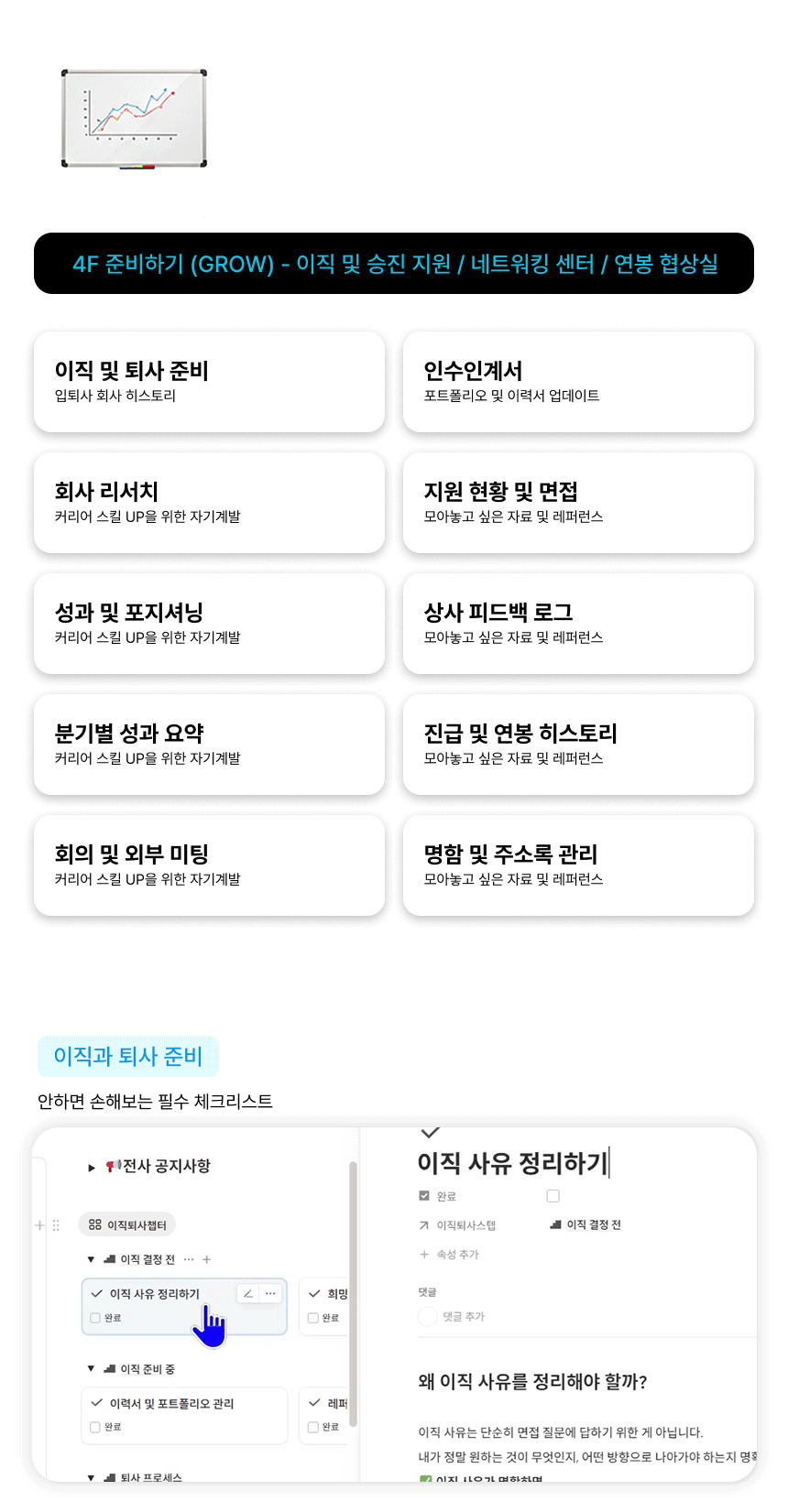 ✓ 이직 준비·퇴사 체크리스트·지원 현황 관리