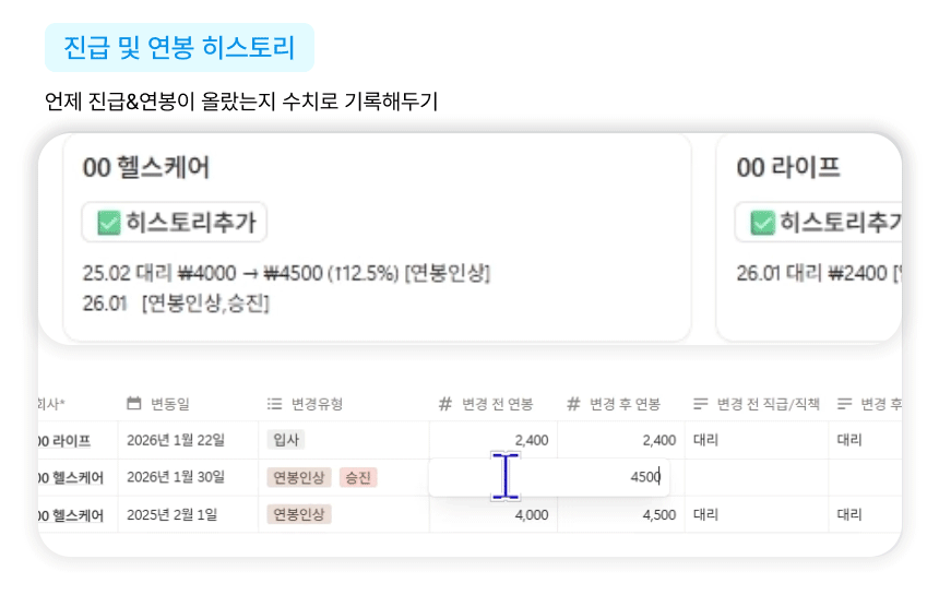 ✓ 연봉 협상·진급 히스토리 한눈에 관리